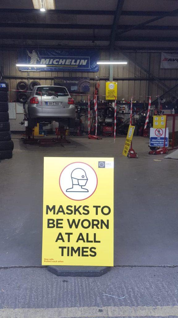 Some Additional Covid-19 Signage Erected This Evening At Slieverue Tyres In The Abbey Road Business Park.